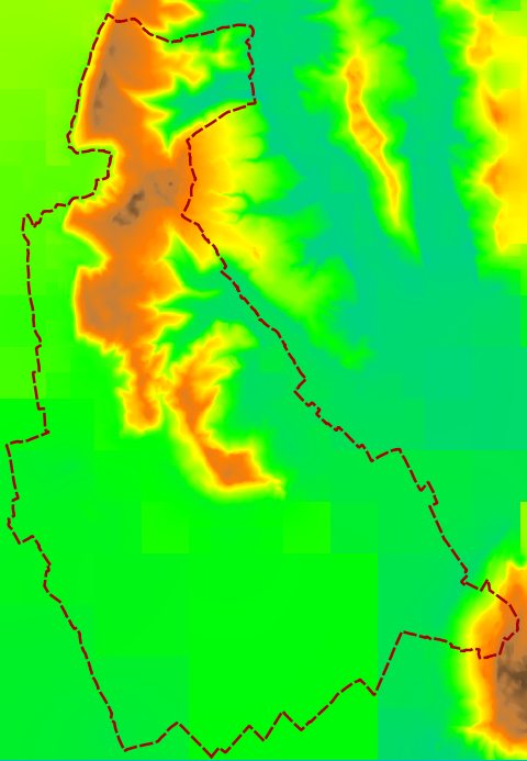 Avevo a disposizione un DEM con risoluzione 5m (realizzato con GRASS a partire dalle curve di livello della CTRN) ed il vettoriale del limite amministrativo.Tuttavia il DEM (chiamato dem_5m) ricopre un’area pressochè rettangolare ben più ampia del limite del comune ed avevo la necessità di “clipparlo” sul boundary di interesse. Ho agito per passi successivi utilizzando GRASS dall’interno di QGIS.